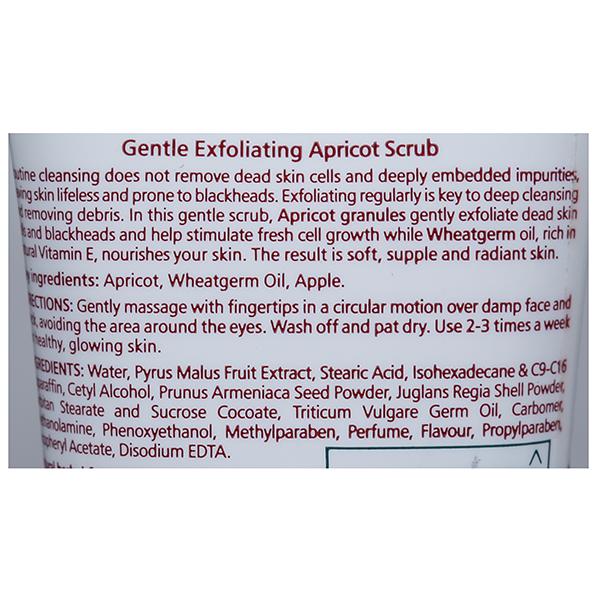 Himalaya's Gentle Exfoliating Apricot Scrub exfoliates dead skin cells and blackheads and unclogs pores. It also deep cleanses facial skin and stimulates fresh cell growth to keep skin soft and glowing. Routine cleansing does not remove dead skin cells and deeply embedded impurities, leaving skin lifeless and prone to blackheads but Gentle Exfoliating Apricot Scrub has Apricot kernel granules that gently scrub the skin to remove dead skin cells and blackheads. Wheatgerm Oil, rich in natural vitamin E, moisturises the skin, and Crab Apple provides nourishment for healthy, glowing skin. Apply Gentle Exfoliating Apricot Scrub in a circular motion on the face and neck. Wipe off with a moist cotton pad. Rinse with water and pat dry. Use at least once a week for a glowing, healthy complexion. It is suitable for dry to normal skin. The product is dermatologically-tested, noncomedogenic and hypoallergenic. It weighs 50gm.