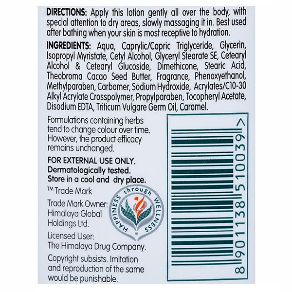 Whether its winter, summer or spring, give you skin the care and protection it deserves all round the year with the Himalaya Herbals Intensive Moisturizing Body Lotion. No matter you have a dry, scaly or chafed skin – this herbal body lotion from Himalaya is the one solution for all your skin problems. Regular application may even make the extremely dry skin soft and supple. Enriched with natural ingredients, it is chemical-free, making it a great choice for dry skin type.Direction Of Use -