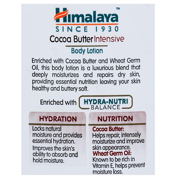 Whether its winter, summer or spring, give you skin the care and protection it deserves all round the year with the Himalaya Herbals Intensive Moisturizing Body Lotion. No matter you have a dry, scaly or chafed skin – this herbal body lotion from Himalaya is the one solution for all your skin problems. Regular application may even make the extremely dry skin soft and supple. Enriched with natural ingredients, it is chemical-free, making it a great choice for dry skin type.Direction Of Use -
