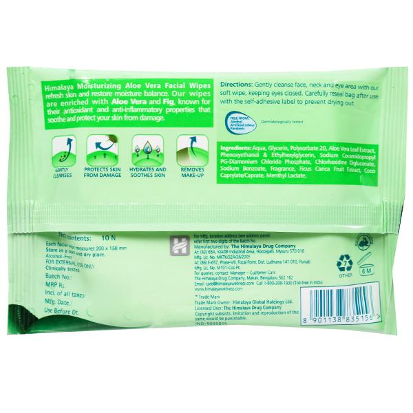 Product Information- Packed with the goodness of aloe vera, Himalaya moisturizing aloe vera facial wipes help moisturize and soothe your skin while effectively removing dirt. The natural, gentle formulation instantly refreshes your skin and helps maintain the moisture balance.