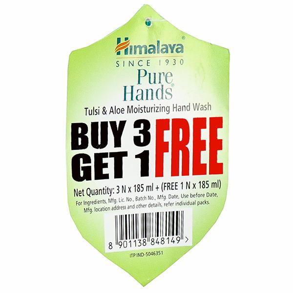 Himalaya Pure Hands Tulsi & Aloe Moisturizing Hand Wash Refill (Buy 3 Get 1 Free) 4 x 185 ml