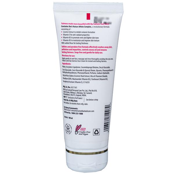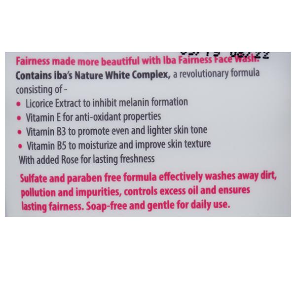 Iba Fairness Face Wash Nature White Complex + Rose enriched with Revolutionary Nature White Complex effectively washes away dirt, pollution and impurities, controls excess oil and ensures longer lasting fairness. Soap-free, sulfate free and gentle for daily use.