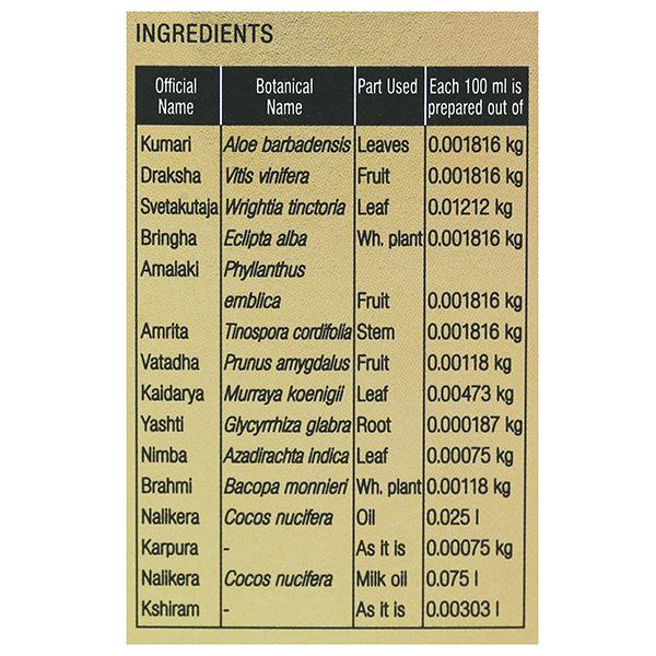 Ingredients – Bringha (Eclipta Alba), Svetakutaja (Wrightia tinctoria),