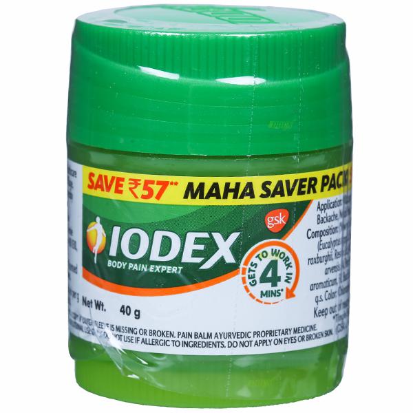 Product Information - Iodex is a multi purpose balm that provides a warm and soothing effect and helps to reduce the inflammation and relieves the pain. Iodex with its power packed formula helps to provide a warming action upon massage that helps in reducing muscular inflammation and gives relief.