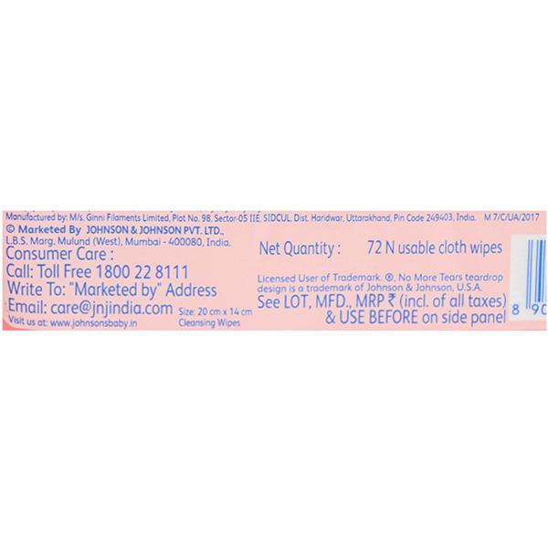 Johnsons Baby Wipes with Lid (20 cm x 14 cm) Pack Of 72