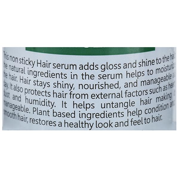 Product Information- This non sticky hair serum adds gloss and shine to the hair, the natural ingredients in the serum helps to moisturize the hair. Hair stays shiny, nourished and manageable all day. It also protects hair from external factors such as heat, dust and humidity. It helps untangle hair making it manageable. Plant based ingredients help condition and smooth hair, restores a healthy look and feel to hair.