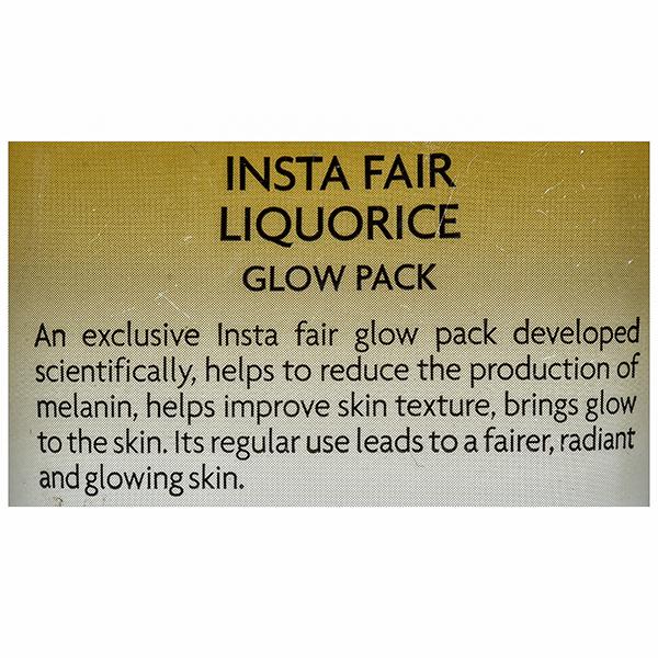 Product Information – An exclusive Insta fair glow pack developed scientifically, helps to reduce the production of melanin, helps improve skin texture, brings glow to the skin. Its regular use leads to a fairer, radiant and glowing skin.