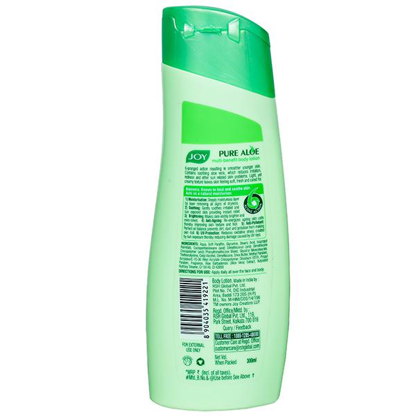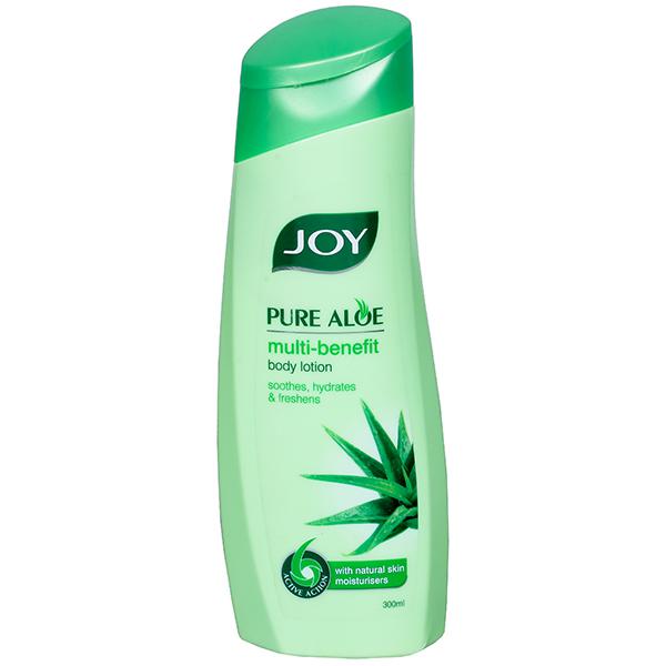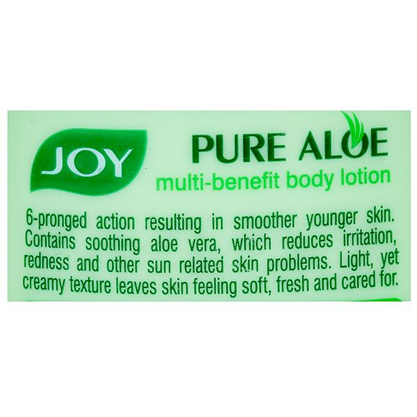 Joy Pure Aloe Multi-Benefit Moisturizing Body Lotion is a light moisturizing body lotion for hydration and smooth skin. It contains soothing aloe vera, which reduces irritation, redness & other sun-related skin problems. Light, yet creamy texture leaves skin feeling soft, fresh & cared for. The 6-pronged action results in smoother younger skin.