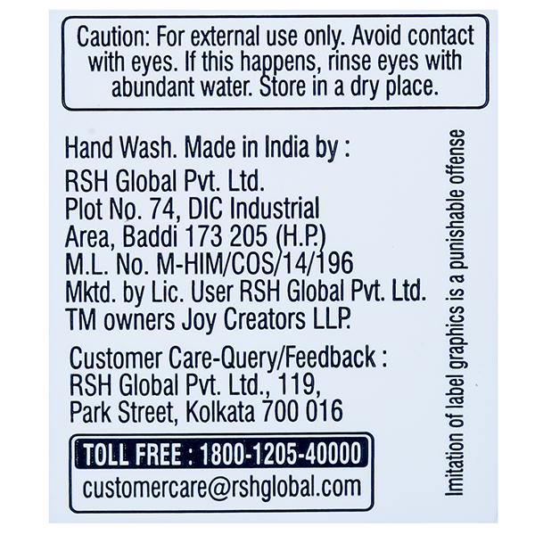 Product Information:- Joy Pure & Safe Hydrating & Germ Protection Hand Wash With Mandarin & Berries is enriched with the natural extracts that offers unique dual benefit of tough on germs and soft on hands. Use the hand wash regularly to keep hands clean, hydrated and sanitized.