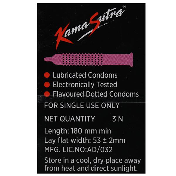 Product Information: Kama Sutra condoms are made from natural rubber latex which gives you the most Intense Sensations and natural feeling to the partner. This is a premium quality condom brand, which is manufactured under the guidelines of ISO certification. Kama Sutra promotes safe sex through their exciting range of condoms. The arousing variants have been created keeping your pleasure and satisfaction in mind.