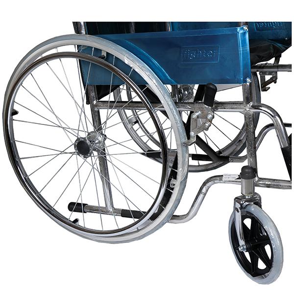 Product Information - This Karma fighter series wheel chair and is a very basic, no-frills, inexpensive wheel chair. It has leather-like polyester fiber material for the bottom and back and a chrome plated metal frame and is ideally suited for indoor use. It is an extremely comfortable chair and the patient will be able to sit in the chair for hours at a time without any discomfort. The armrests are fixed while the foot rests can be folded when required. However, the footrests are not detachable.