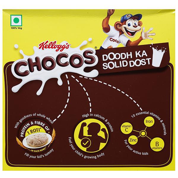 Product Information:- Kellogg's Chocos is a Solid & Nourishing food for your kids .The goodness of wheat, calcium and fibre filled in these chocolaty square shaped snacks make your kids happy and healthy.