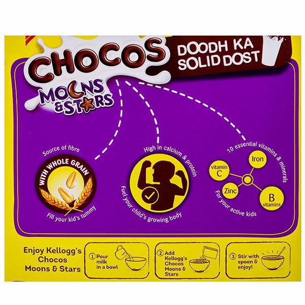 Product Information:- Kellogg's Chocos is a Solid & Nourishing food for your kids .The goodness of wheat, calcium and fibre filled in these chocolaty square shaped snacks make your kids happy and healthy.