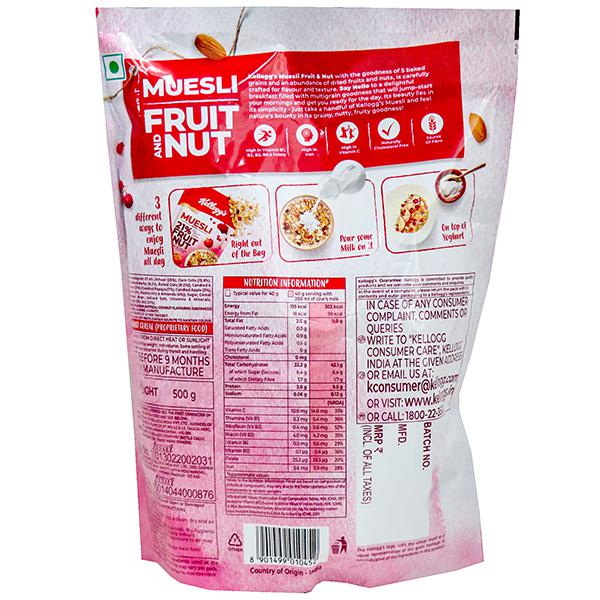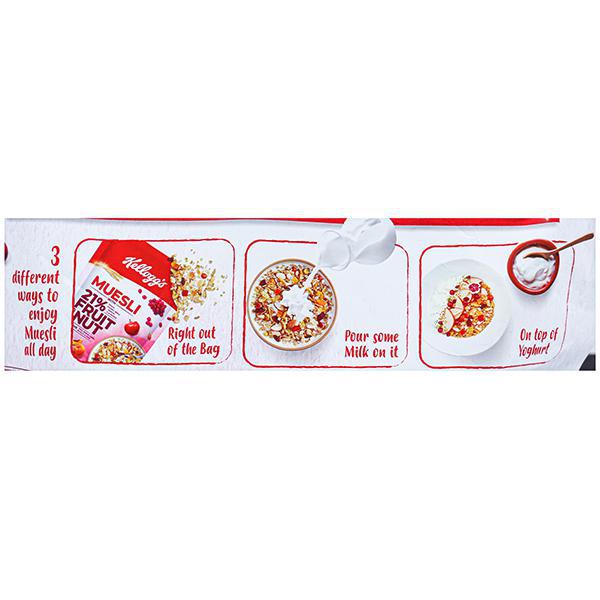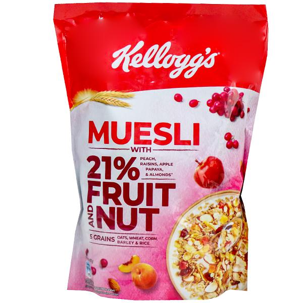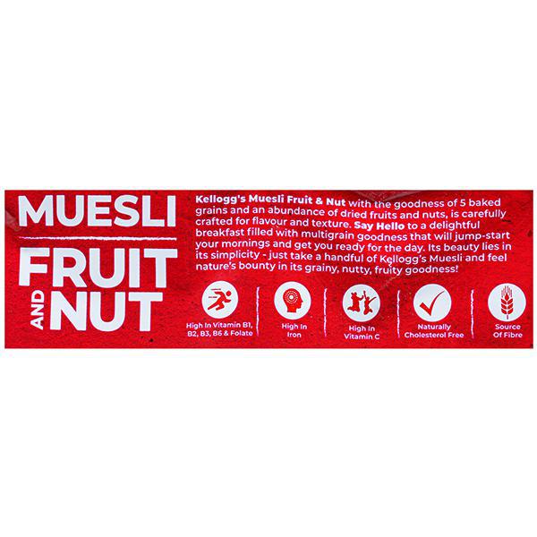 Kelloggs Muesli With 21% Fruit And Nut with the goodness of 5 baked grains and an abundance of dried fruits and nuts, is carefully crafted for flavour and texture. Say hello to a delightful breakfast filled with multigrain goodness that will jump-start your mornings and get you ready for the day.