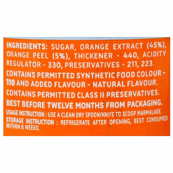 Sugar, Orange Extract(45%), Orange Peel(5%), Thickner(440), Acidity Regulator(330), Preservatives(211, 223)