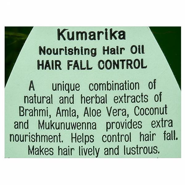 Product Information- ANTI-HAIR FALL PRODUCT: Enriched with the power of natural herbs, Kumarika Hair Fall Control Oil fights against hair fall leading to baldness. Studies have found that hair fall can occur due to irregular blood flow in the scalp, massaging your scalp will regulate blood flow and Kumarika Hair Fall Control Hair Oil will nourish and strengthen your hair thereby greatly reducing hair fall. Use it daily for optimal results.