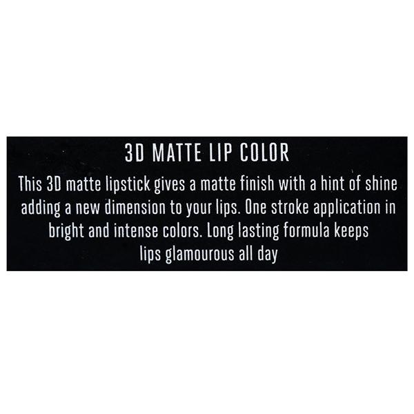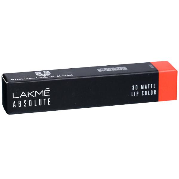 Product Information:- The new Lakmé Absolute 3D Matte Lip Color helps you add a new dimension to your lips! It is matte with a hint of shine, for glamorous lips with added dimension. Experience rich colour payoff in a single stroke. Its long-lasting formula will keep your lips looking glamourous all day.