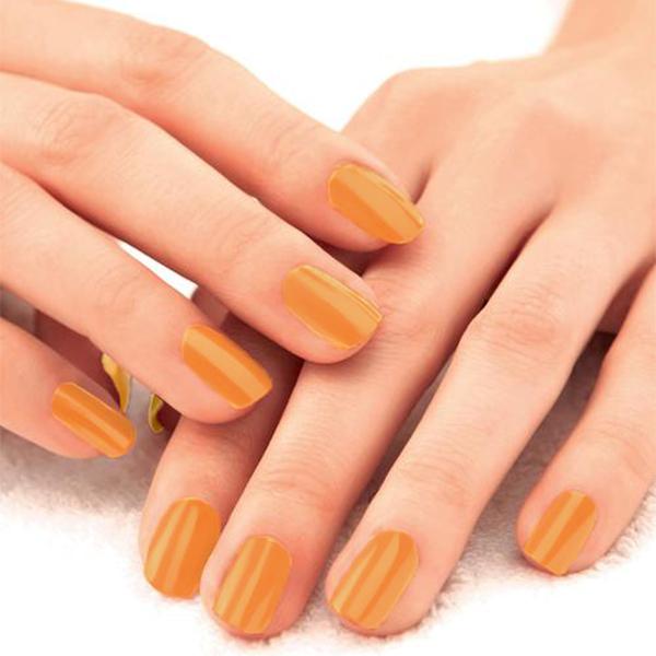 - Place on the centre part of the nail just below the cuticle and drag below.