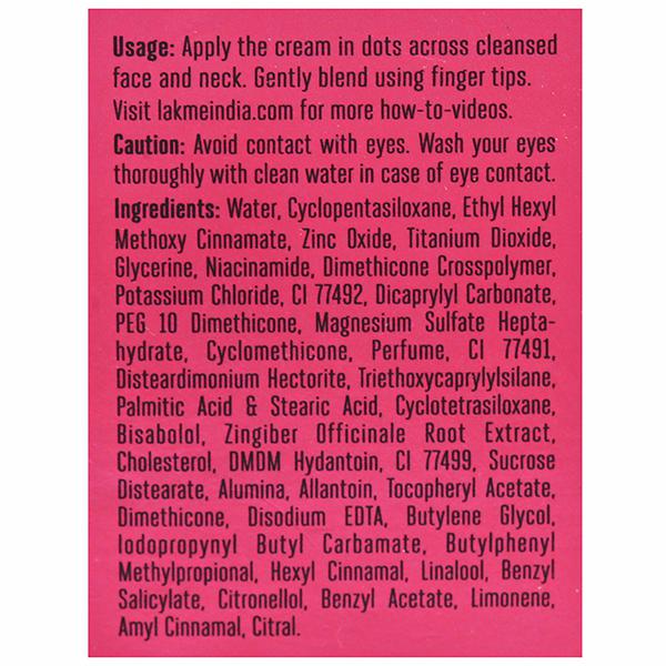 Lakme CC-Complexion Care Spf 30 Pa ++ Almond Cream instantly protects, moisturizes, evens skin tone and also conceals any spots and blemishes. It contains SPF 30 which also protects your skin from UV rays.
