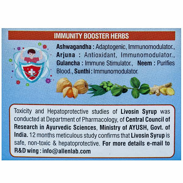 Livosin Syrup is nontoxic & hepatoprotective preparation made up of natural ingredients, which restores & protects the normal functioning of the liver. The spleen aids the immune system by producing lymphocytes & removing damaged RBC (Red Blood Cell). Livosin syrup protects the spleen and also improves digestion, promotes appetite, reduces gas and acidity, and relieves constipation. It also supports proper digestion to maintain immune health & improves the overall healthy living of an individual.