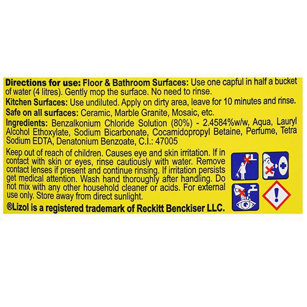 Product Information - Lizol Disinfectant Citrus Surface Cleaner contains a distinctive formulation that kills 99.9% germs and gives 10 times better cleaning and germ protection than standard Phenyls, keeping the whole house cleaner, shinies and germ free. Lizol disinfectant Citrus surface cleaning liquid can be used either directly or diluted. For light soiled areas you should clean with Lizol mixed with water, whereas, for heavy soiled areas it can be used without any dilution. Lizol takes complete care of your family by keeping your kitchen, bathroom, floor and furniture clean.