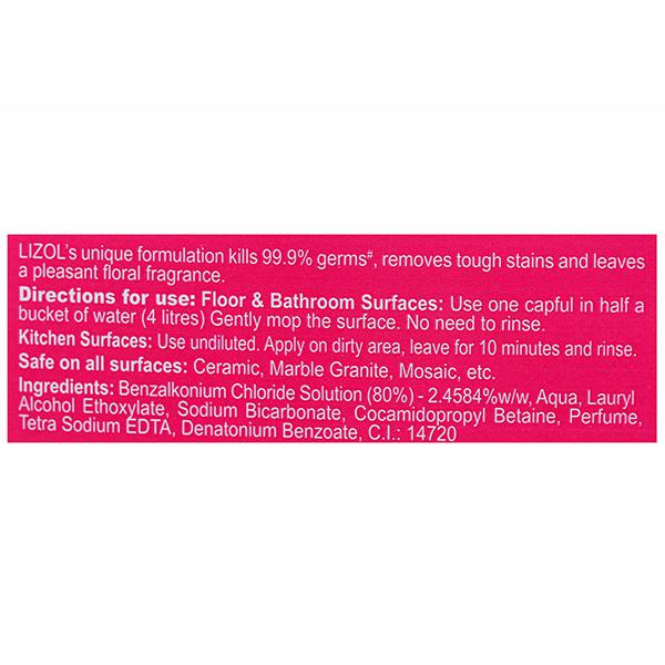 Product Information - Proven to provide 10 times better cleaning and germ protection than standard Phenyls, the floral-scented Lizol Surface Cleaner is perfect for floor, tiles, sinks and kitchen counters.
