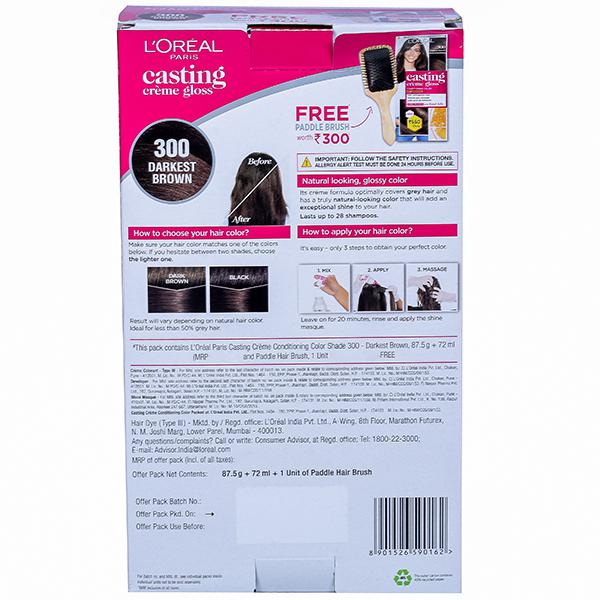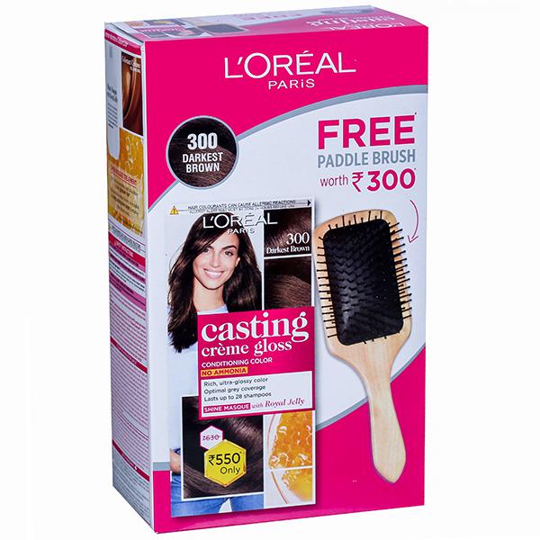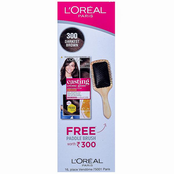 Loreal Paris Casting Creme Gloss Conditioning Hair Color 300 Darkest Brown (Free Paddle Brush) (87.5 g + 72 ml)