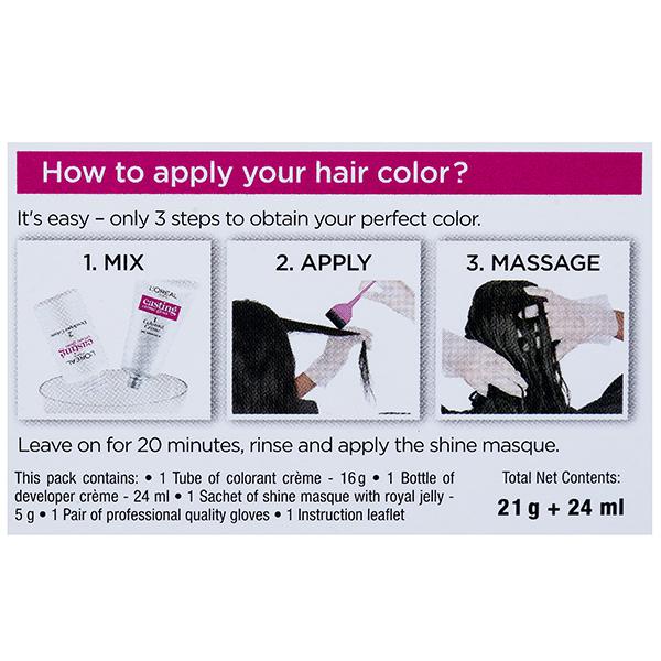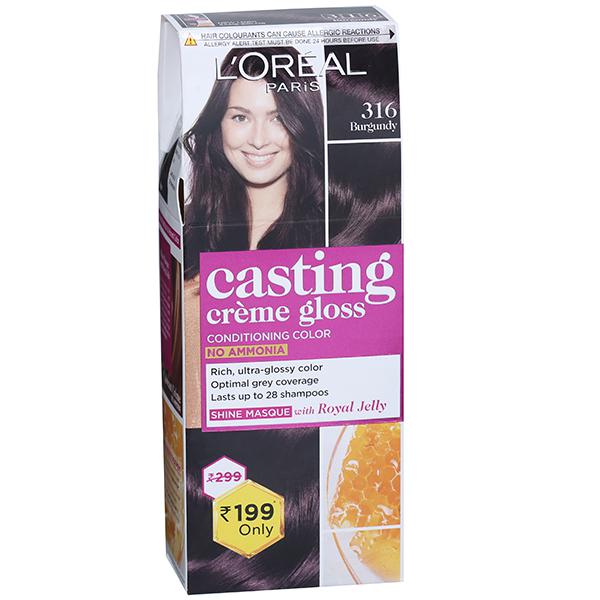 Casting Creme Gloss is an ammonia-free hair color that gives your hair visible shimmering tones, glossy shine and covers greys. It gives you the richness of natural hair color that lasts up to 28 shampoos. Casting Creme Gloss super-nourishing formula of caring conditioner leaves your hair nourished, soft, voluptuous. Available in 11 glossy shades. Easy to apply with the non-drip crème formula in just 20 minutes, even for beginners. The delicate fragrance makes colouring a luxurious treat. Get natural looking results and ultra-glossy colour with Casting Creme Gloss by L'Oreal Paris India.