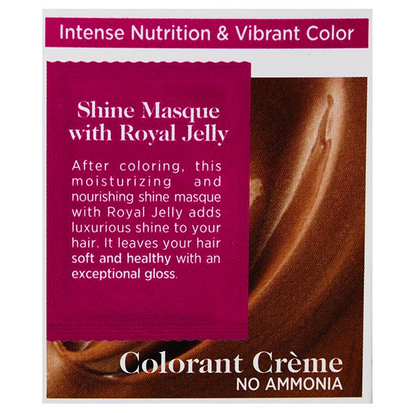 Natural Looking Glossy Color, It's Creme Formula Optimal Covers Grey Hair And Has A Truly Natural- Looking Color That Will Add An Exceptional Shine To Your Hair. Lasts Upto 28 Shampoos. Intense Nutrition & Vibrant Color Shine Masque With Royal Jeely, After Coloring , This Moisturizing And Nourishing Shine Masque With Royal Jelly Adds Luxurious Shine To Your Hair. It Leaves Your Hair Soft And Healthy With An Exceptional Gloss.