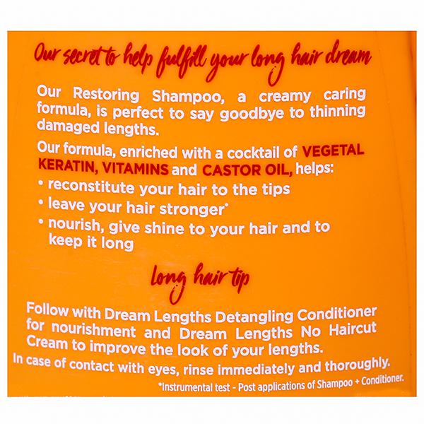 Dreaming of long hair but tired of long hair problems like hair breakage, damaged hair, and split ends? Save your last 3cm and instantly transform your long hair with the new L’Oréal Paris Dream Lengths Restoring Shampoo. Infused with Vegetal Keratin and Castor Oil, Dream Lengths Restoring Shampoo intensely repairs the lengths of your hair and helps seal split ends so you can achieve your long hair goals without the long hair problems. With vitamin B3 and B5, this shampoo visibly repairs damaged hair without any weigh down, and leaves your hair feeling 2X stronger. For best results and reduced hair breakage, use the L’Oréal Paris Deam Lengths Restoring Shampoo with Dream Lengths Detangling Conditioner and Dream Lengths No Haircut Cream (Leave In Cream).