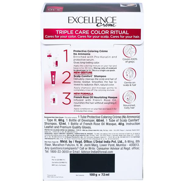 Get 100% grey coverage from root to tip with Loreal Paris Excellence Cream Triple Care Colour.