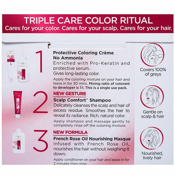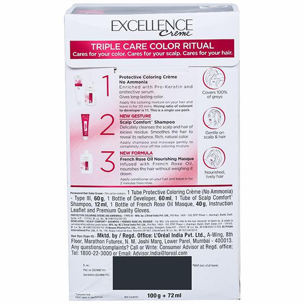 Excellence is a permanent hair colour. The only hair colour which comes with the “complete kit” which protects, strengthens and replenishes hair. Pro-keratin: excellence crème revitalizes colour hair feels stronger. Ceramide: enriched with Ceramide, a replica of hair's natural cement, leaves the hair looking smoother and feeling protected. Collagen: known for its firming properties collagen-infused excellence crème leaves hair feeling replenished.