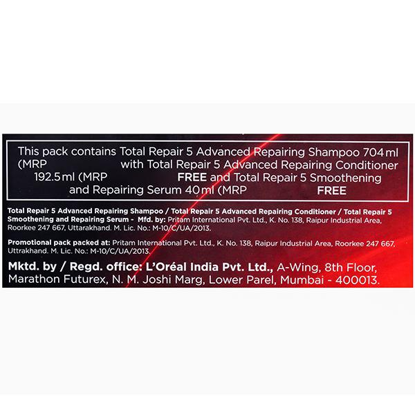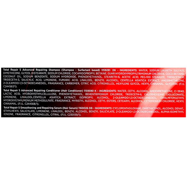 Total Repair 5 Repairing Shampoo helps to fight against the five visible signs of damaged hair -Dryness, Hair fall, roughness, split ends and dullness .