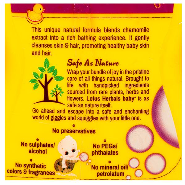 Lotus Herbals Baby+ Little Bubbles Body Wash and Shampoo is specially formulated for your baby’s fragile and delicate skin. It contains the calming goodness of chamomile extracts which makes the bathing experience very soothing and effectively cleanses skin and hair. Moisturizes baby’s soft skin and makes the skin smoother and softer without causing any irritation. Made of natural ingredients, it offers safe and delicate nourishment to your baby’s hair and skin.