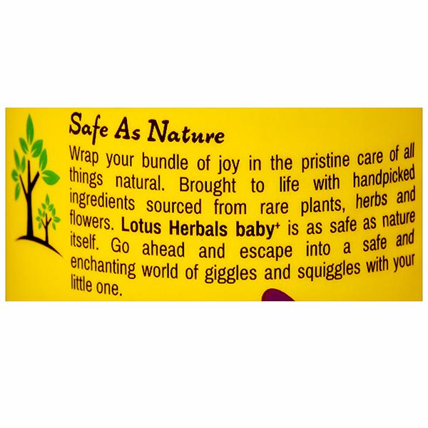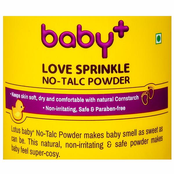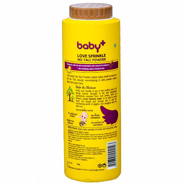 Wrap your bundle of joy in the pristine care of all things natural. Brought to life with handpicked ingredients sourced from rare plants, herbs and flowers Lotus Herbals Baby+ Love Sprinkle No-Talc Powder is as safe as nature itself. This natural, non-irritating & safe powder makes baby feel super-cozy and makes your baby'smell as sweet as can be. Go ahead and escape into a safe and enchanting world of giggles and squiggles with your little one.