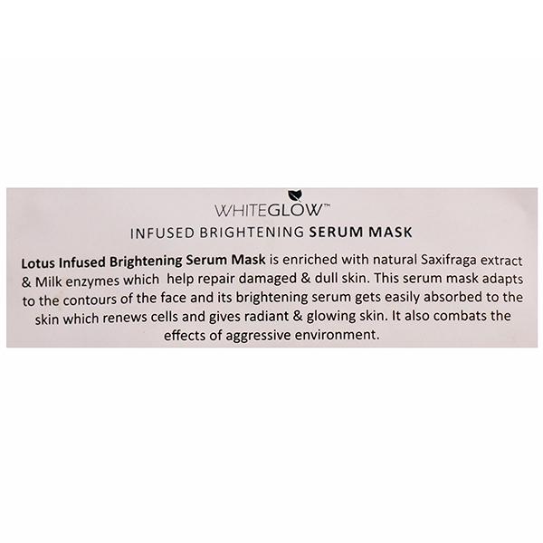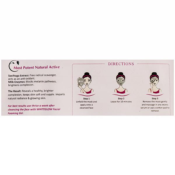How to Use- Step 1: Unfold the mask and apply onto a cleansed faceStep 2: Leave for 10 minutesStep 3: Remove the mask gently and massage in any excess serum or use a cotton pad to removeDo not rinse the face post application.For best results use thrice a week after cleansing the face with WhiteGlow Facial Foaming Gel.