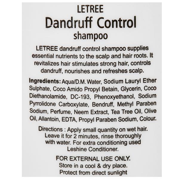 LETREE dandruff control shampoo supplies essential nutrients to the scalp and hair roots. It revitalizes hair stimulates strong hair, controls dandruff, nourishes and refreshes scalp.