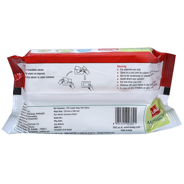 Product Information- LuvLap Extra Thick Baby Wipes are the perfect wipes for your baby's delicate skin. Theese extra thick wipes more absorbant and provide a superior cleaning experience. Enriched with the goodness of aloe vera and chamomile, they are completely free of alcohol and harmful parabens. After all, your baby's safety is our prime concern.