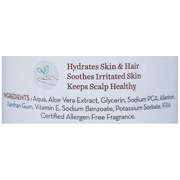 Aloe Vera : Aloe Vera is incredibly soothing for skin and hair. It hydrates and nourishes, and is a powerful antioxidant. It relieves skin irritation and heals cuts & burns. It strengthens hair from the roots and also helps reduce frizz by providing moisture.