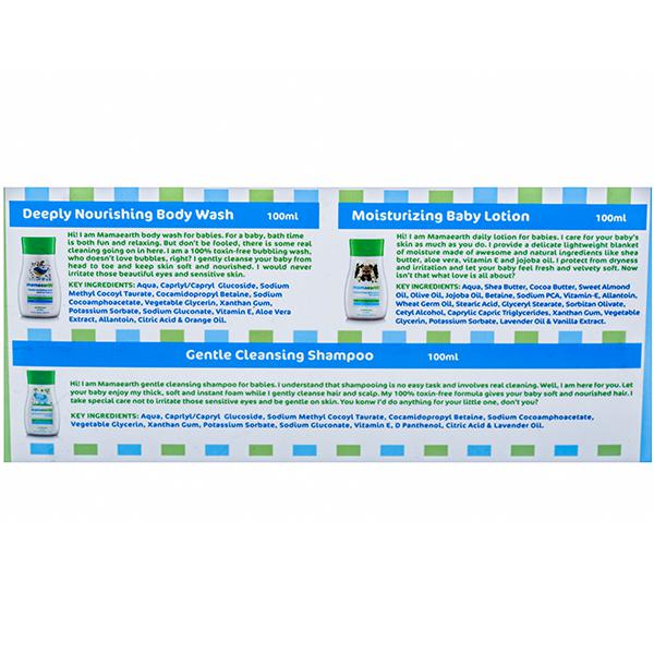 Included Components - 1 Shampoo, 1 Lotion, 1 body wash