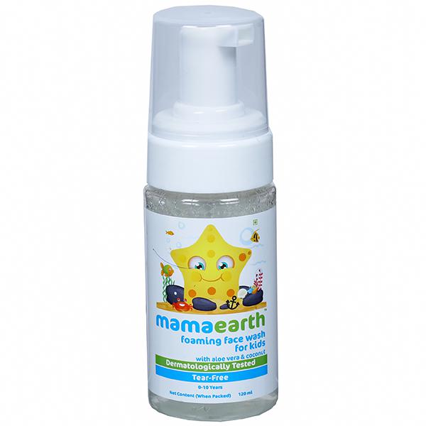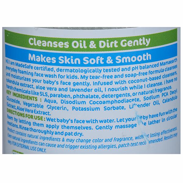 Mamaearth Foaming Baby Face Wash for Kids, 120 ml: FACE CARE FOR KIDS - Mamaearth's daily use mild foaming face wash gently cleanses the face with soothing Aloe Vera and Calendula extracts. It easily washes away impurities like dirt and grime without drying out the sensitive and delicate skin of kids.