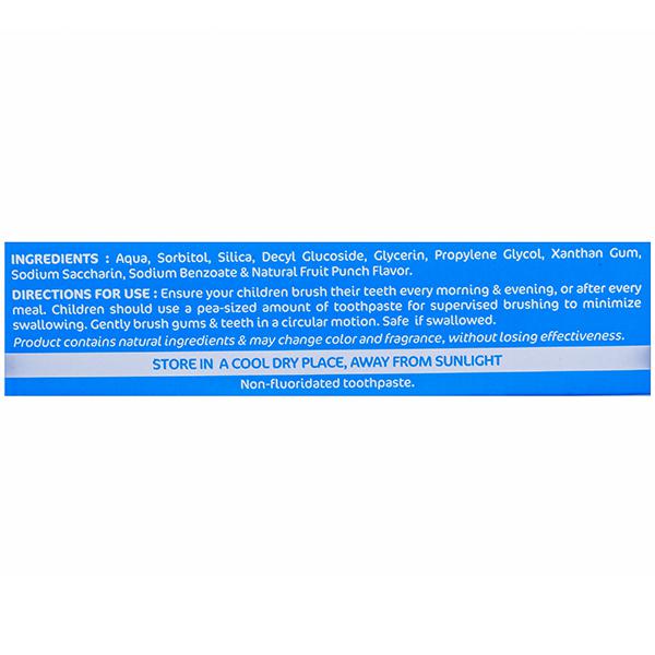 Acking a punch of fruits, the toothpaste gently cleanses teeth, removes plaque, and reduces bacterial growth. It provides maximum protection against cavities without being harsh on the gums or teeth enamel.100% NATURAL.Fruity Toothy Cleanse! 100% natural and unique kid-friendly toothpaste that offers effective dental and oral hygiene without the use of harsh abrasives or additives.