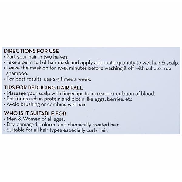 Application- Apply mask to wet hair and scalp. Leave it on for 10-15 minutes, wash off with sulphate free shampoo.