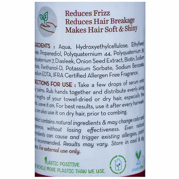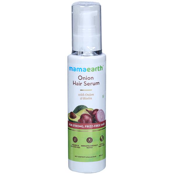 About this item- Looking for a hair serum that chases away all your hair problems while keeping them strong and frizz-free? Your search ends now. Good hair days are here with Mamaearth Onion Hair Serum. It's time to trust the goodness of onion, an age-old home remedy to address hair issues like frizz, breakage, and hair fall. Onion is rich in sulfur that makes your hair strong and reduces breakage. Biotin improves overall hair quality, reduces breakage, and increases thickness while olive oil helps in making hair smooth, and frizz-free. Safe for colored, chemically treated hair, this hair growth serum suits all hair types, and is free of harmful chemicals and toxins.