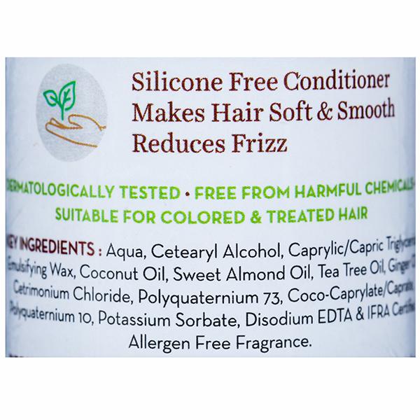 Product Information- Stimulate and renew your hair with an outlandish mix of Tea Tree and Ginger Oil that helps in reducing itch & irritation while contributing to the shine and smoothness of the hair and soothing dryness and itchiness. Mamaearth Tea Tree Conditioner is made using natural ingredients and makes sure that dandruff and excess oil are gently worked on & removed. Coconut oil present in the conditioner works like magic on dry and brittle scalp, making hair soft and smooth. Almond Oil nourishes and moisturizes hair while adding shine. Ginger Oil contributes to the health of the hair and soothes dryness. Safe for colored & chemically treated hair, this conditioner is free of harmful chemicals & toxins such as Silicones, Parabens, Mineral Oil, & Dyes.
