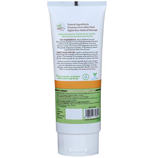 "The first step in a skincare routine, cleansing or washing your face helps in eliminating excess oil, dirt, and lethargy. Mamaearth Vitamin C Face Wash with the goodness of Vitamin C and Turmeric has brightening properties to give your skin a natural glow. It also helps in skin repair by boosting collagen production and blood circulation, leaving the skin radiant and healthy. Perfect for daily use, this face wash suits all skin types, retains moisture, controls excess oil, and fights free radical damage.