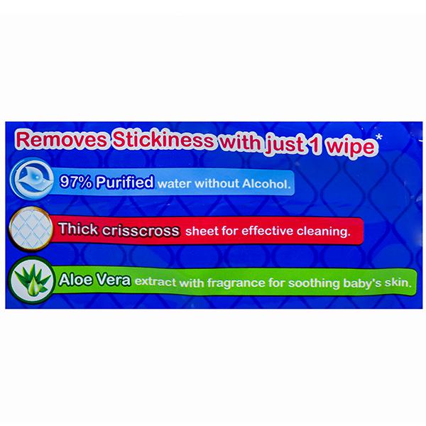 Helps in effective cleaning of baby’s skin & removes stickiness with just 1 wipe.