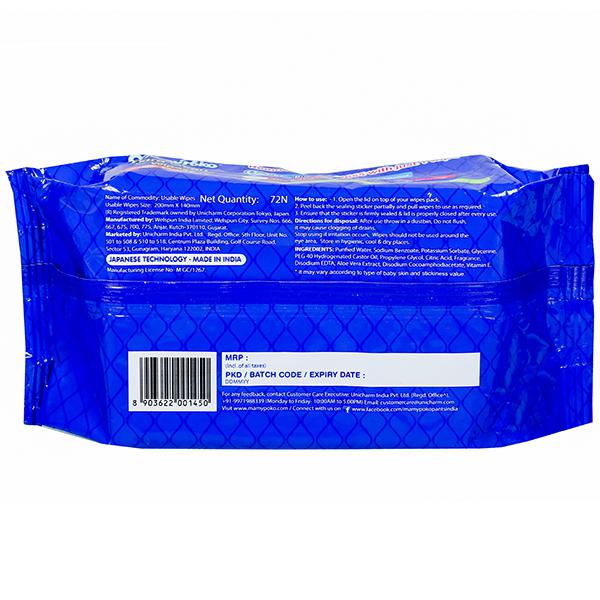 Product Information - New MamyPoko Extra clean wipes comes with Thick crisscross sheet which helps in effective cleaning, Aloe vera extract with fragrance to sooth baby’s skin & 97% Purified water without alcohol to protect baby’s skin from harmful chemicals, all to remove stickiness & keep baby’s skin fresh & soft all day long. Use MamyPoko wipes with MamyPoko Pants for best diapering experience.