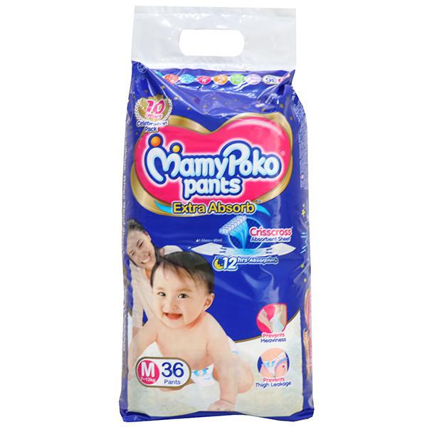 PRODUCT INFORMATION - Mamy Poko pants are pant styled diapers that make diapers easy to wear. And the soft and breathable material takes care of baby's sensitive skin. The crisscross absorbent sheet absorbs urine & spread that equally, and the stretchable thigh support prevents the leakage, thus baby remains dry.