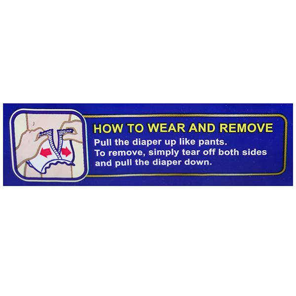 · Pant styled diapers with soft elastic band.